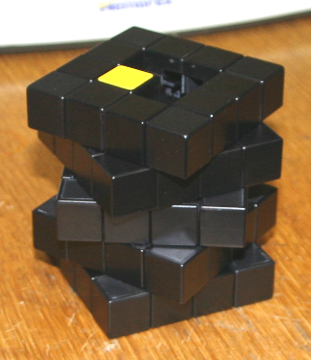 Comparison between an Eastsheen 4x4x4 and the 4x4x5. Missing pieces on the top of the 4x4x5 intentionally left out. Also note the small caps on the bottom layers to prevent being able to "look inside." Those caps do not exist on the standard Eastsheen puzzles.