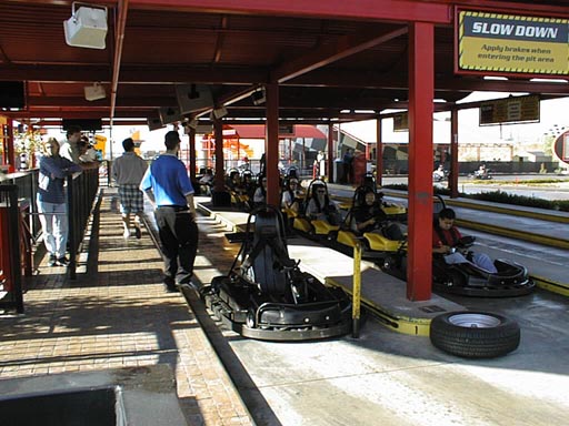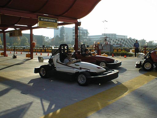 13:00 - Initially everybody I can recall headed over to the slick track. After spending a few hot laps going wheel to wheel with other Probers, I guess the attendants there were starting to get motion sick because they kept cutting the power to the cars remotely. What a bunch of wusses. Unfortunately for that day, the machine that spits out lap Times was busted so I didn't get a chance to see how well I (or anyone else) did. On this race Richard showed himself to be an angry and violent man when behind the wheel of a go-kart. Don't get in his way. Scary stuff, I tell you.