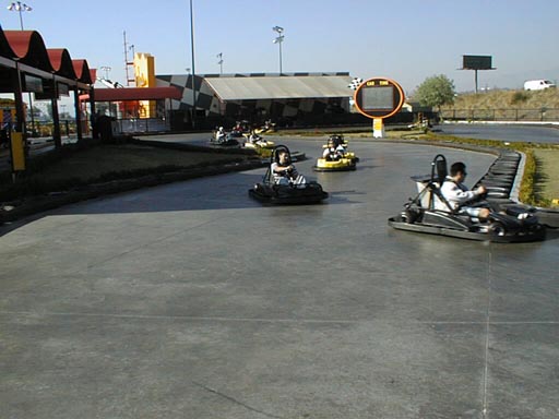 On the second slick track race, I totally creamed an innocent female driver when she oversteered and started gunning the kart. Unfortunately she got on the gas when she was almost facing me. I slammed into her at full throttle and got thrown violently into the harness. Had to shake my head for a moment to clear the fog.